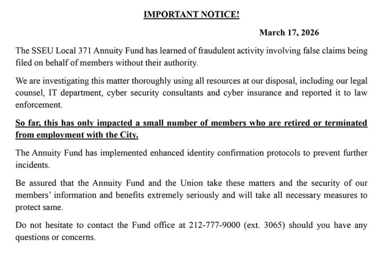 Should you have any questions, do not hesitate to contact the Associate Administrator of the SSEU Local 371 Funds Iris Clark at iclark@sseu371funds.org.